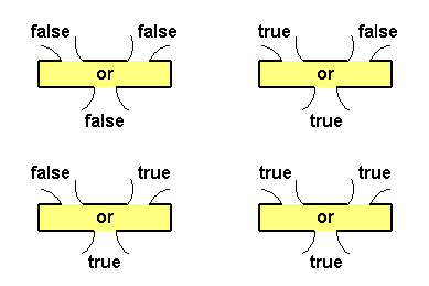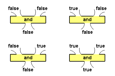 AND | trueFalse1 trueFalse2 | Outputs true if both trueFalse1 AND trueFalse2 are true, false otherwise. |