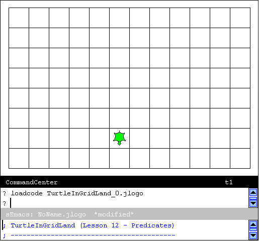 - enter loadcode TurtleInGridLand_0.jlogo into the CommandCenter.