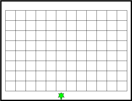 Move the turtle around with the arrow keys. The up-arrow key should move the turtle forward one cell. The left-arrow and right-arrow keys should rotate the turtle left 90-degrees and right 90-degrees respectively. The down-arrow key should move the backward one cell.