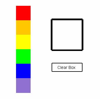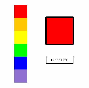 - a line of colored squares (color choice boxes) which do something when they are clicked on. When the mouse is clicked on one of the colored choice boxes, it tells the big box to change its color, and